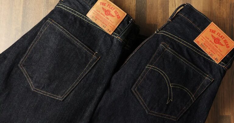 The Flat Head – Renowned for their “vertical fading” characteristics, The Flat Head creates denim that ages with remarkable contrast and sharpness. Their secret lies in using extra-long staple cotton and extremely tight weaving techniques that create a smooth, dense fabric. When combined with their intensive indigo dyeing process, the result is denim that develops bright electric blue highlights as it wears. Their dedication to quality extends to every component, from custom-made rivets to specially developed thread that ages in harmony with the denim.