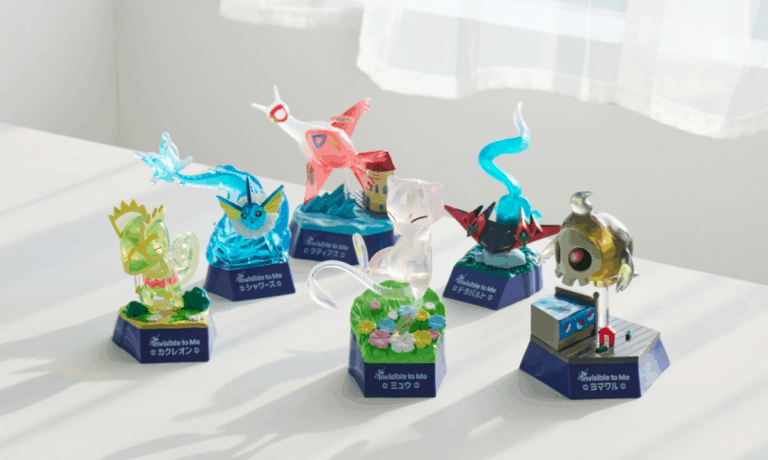 This September 2025 release focuses on Pokémon with transparent or camouflaging abilities, including Latias, Vaporeon, Mew, Kecleon, and Dragapult. The merchandise creatively incorporates the “invisible” theme through transparent materials and clever designs.